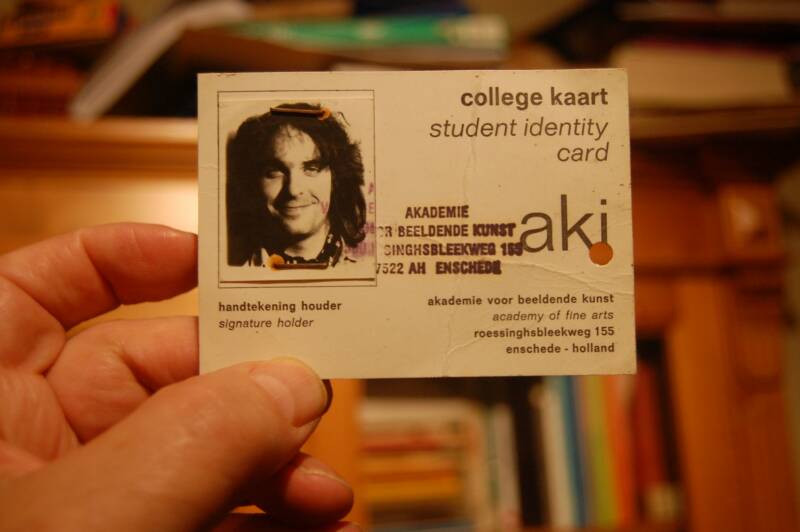 I had to have this photo taken for a final exam catalog of the art academy. I had a really nice school and I was allowed to do all things that I really liked and then you suddenly have to be classified in a box. What are you actually Hans? And if I answered that honestly then I would be: Painter, photographer, graphic artist, filmmaker, illustrator and decor maker, but mainly a researcher. And then I said after it, or just call it mixed media, that seems good to me. But that was not allowed. Oh? I thought? Why not? In the end, they wanted to turn it into a graphic designer, because my photos apparently appealed to the person who wanted to fill it in. Probably because it was a photographer himself. So the assignment was to bring something that was appropriate for your profession. Well and then I made a box. I thought that was appropriate: A box in a box.