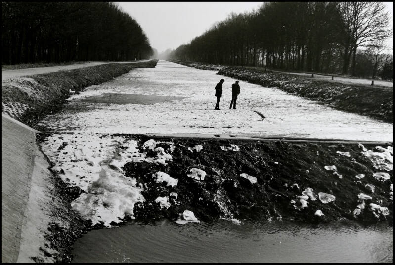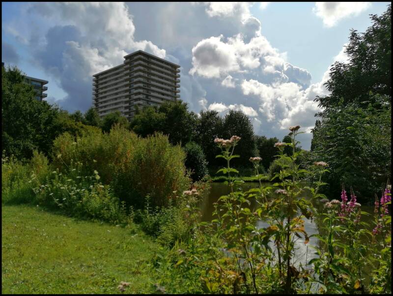 We also came across a very special canal in Enschede that had been dug for the industry at the time, but had never actually served as a much-traveled canal. The canal went through a beautiful landscape and we had made the plan with our photography teacher Cor Jaring to sail over it smoothly with styrofoam and photograph everything we would encounter.