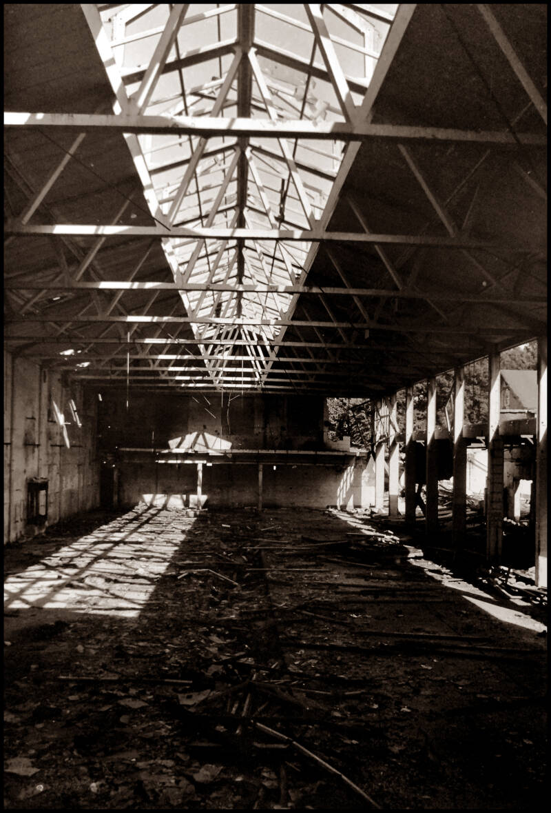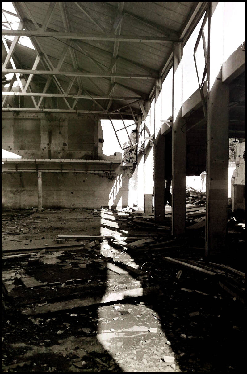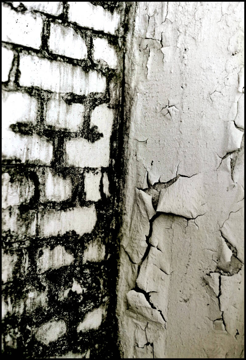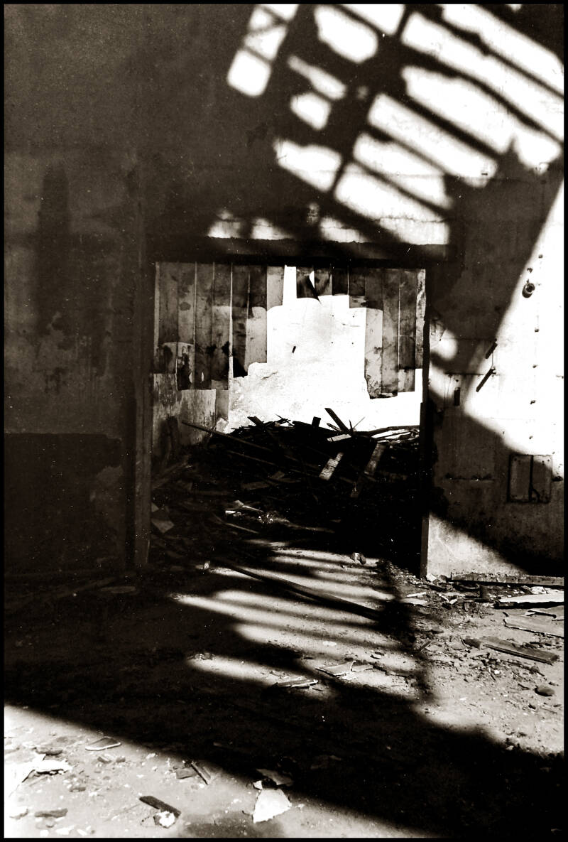 The remnants of pin-ups that were left behind also tell a story in themselves. Apparently they were mostly men in the workplace. It is grateful to show this in black. This makes the images of course completely different than before and they have become memories.