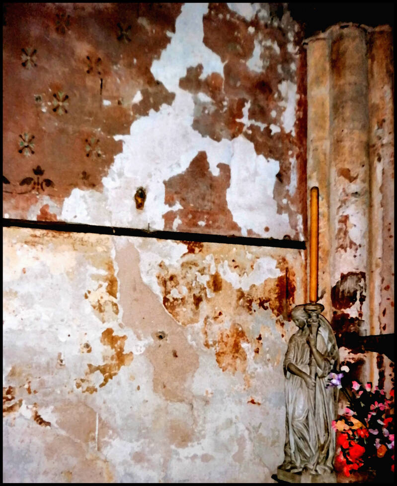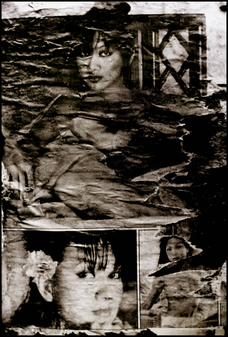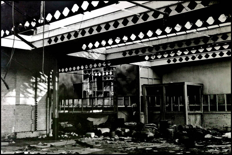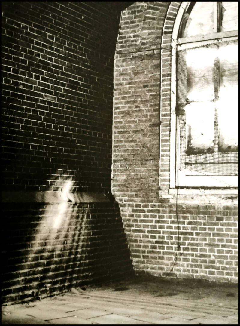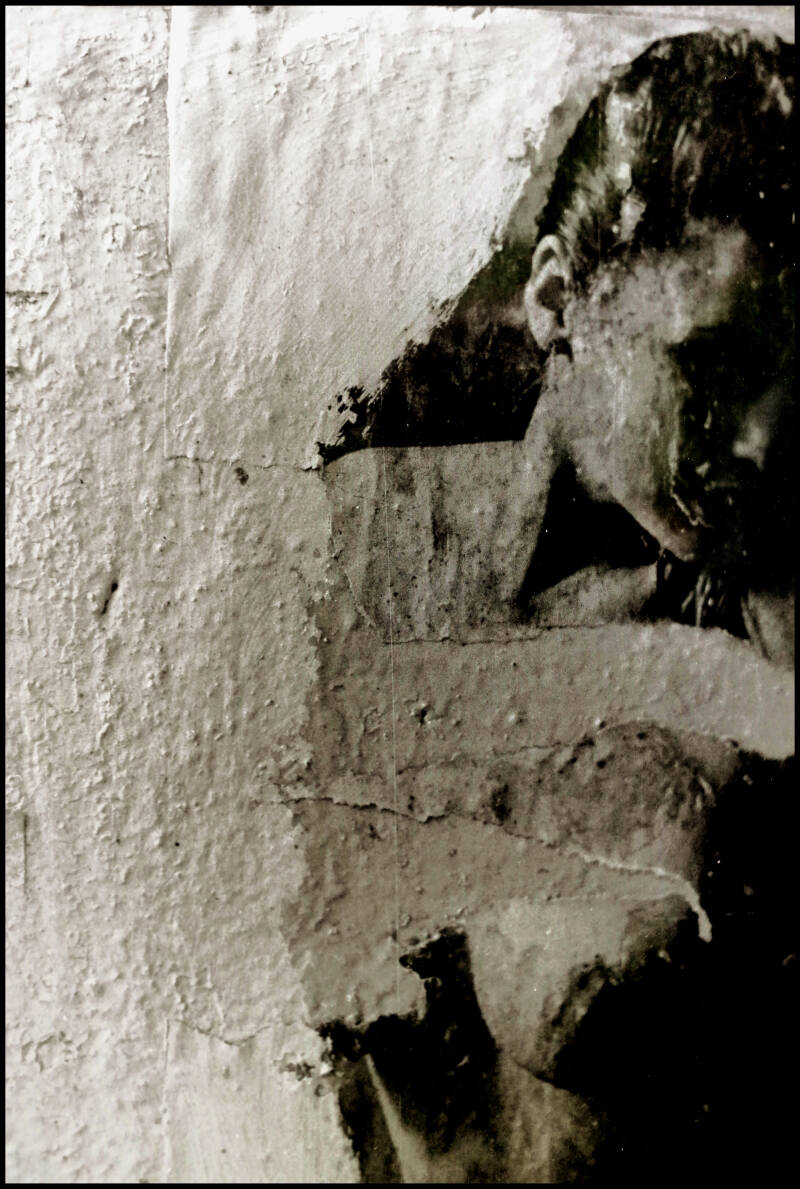 The remnants of pin-ups that were left behind also tell a story in themselves. Apparently they were mostly men in the workplace. It is grateful to show this in black. This makes the images of course completely different than before and they have become memories.