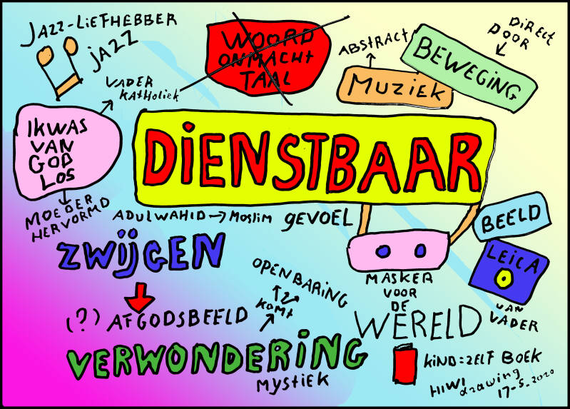 Hi-WI drawing is een nieuwe techniek van tekenen die ik vanuit stichting Bando heb willen introduceren. Bij de HI-WI drawing gaan we uit van een onderwerp dat aanvankelijk duidelijk in blokletters op een * whiteboard getekend wordt. En daarna aangevuld wordt met aanvullende woorden, gedachtes en/of eenvoudige tekeningetjes of illustraties. Het gaat uit van de zogeheten mind-map gedachte waarbij je zelf vorm en inhoud bepaald. Uiteindelijk krijg je als resultaat een hele bijzondere mindmap-afbeelding die je zeker kan helpen om je verhaal beter onder woorden te brengen.