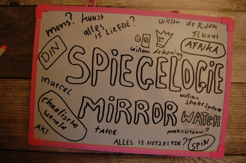 In die tijd had ik veel te maken met Willem de Ridder. Een voormalig FLUXUS-kunstenaar die regelmatig gastcolleges kwam geven in Enschede. In een latere periode ben ik zijn SPIEGELOGIE gaan onderzoeken, maar zag daar grote beperkingen van in.